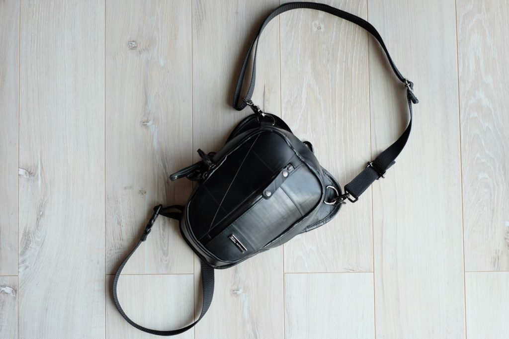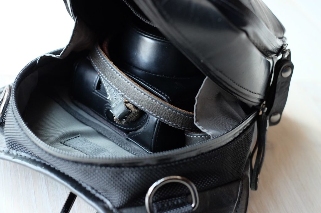全部入れると、こんな感じ。カメラで大きく容量を使っていますが、マチの広さが際立っています。容量と使い勝手で満足度がとても高いです。