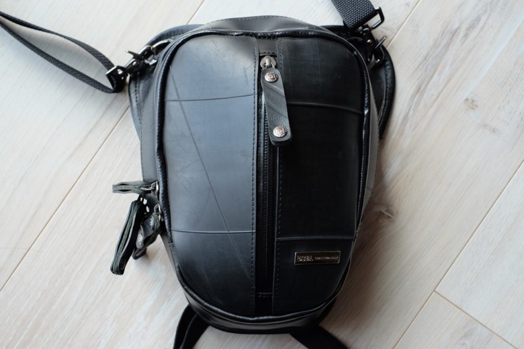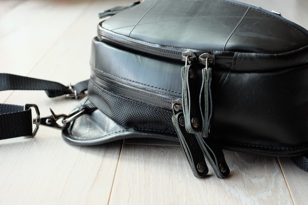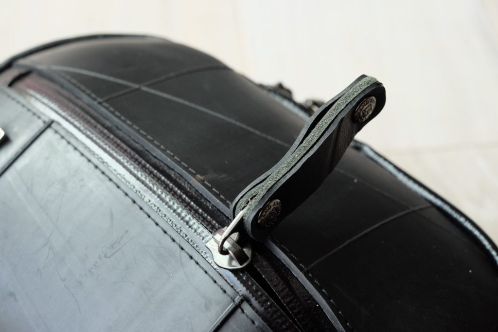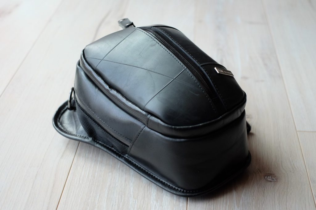 キズが付いてもそれも味になる「タイヤ」という素材、面白いですね。表面の防水性能はタイヤそのものです。