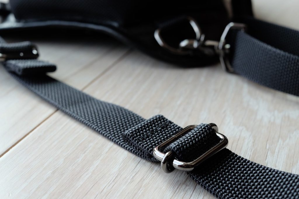 長さの調整は事前にスライダーで行います。例えばショルダーバッグ仕様に変えたいと思っても、少し調整しにくいのが残念。固定は十分できます。