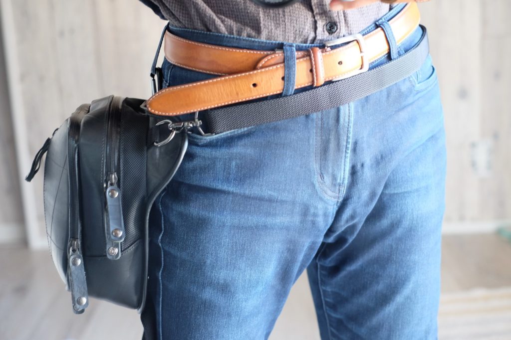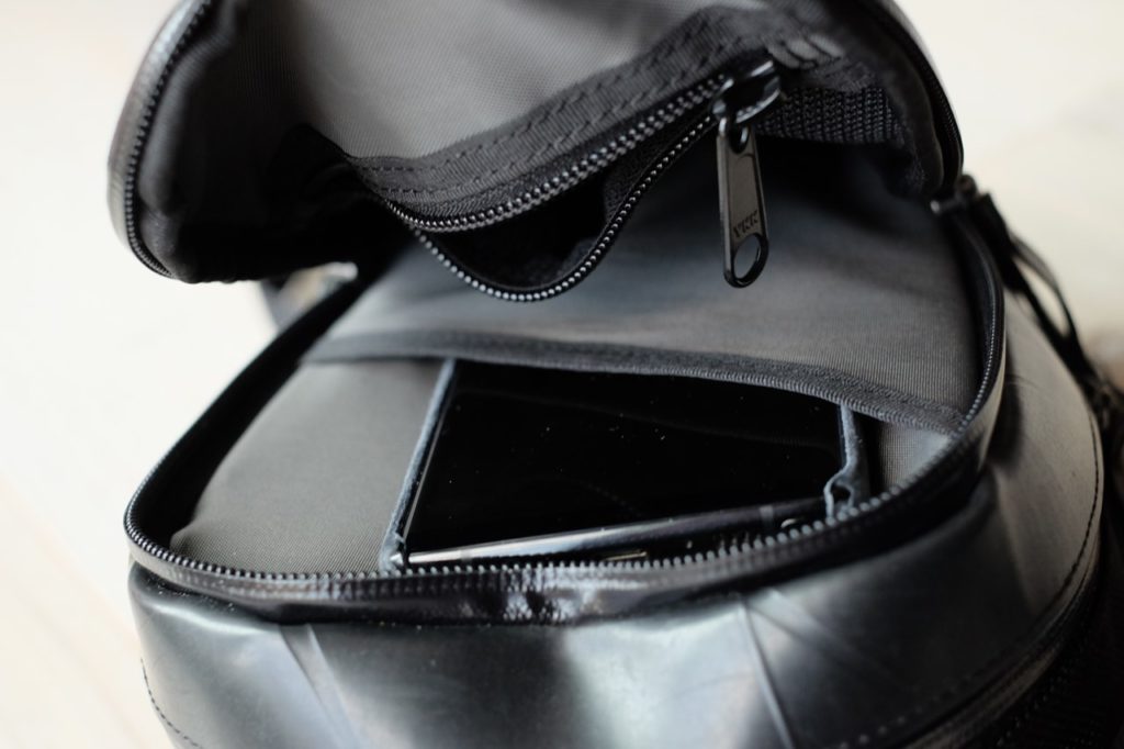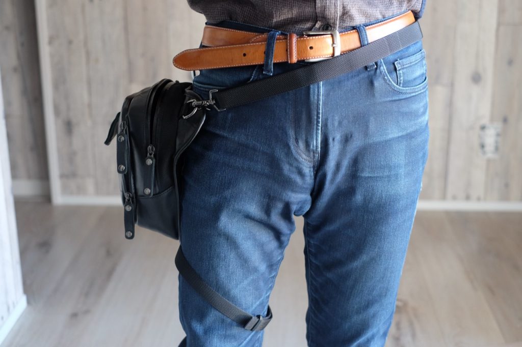 バックパックを背負う時は入れられますが、大体は左前ポケットにスマホ、後ろポケットに財布でした。スマホは6.4インチの大き目サイズ(Galaxy Note 8)なので、乗り降りの時に気になります。あと、財布はいつも「落としてないかな…」と不安になって、お尻を触っていました。