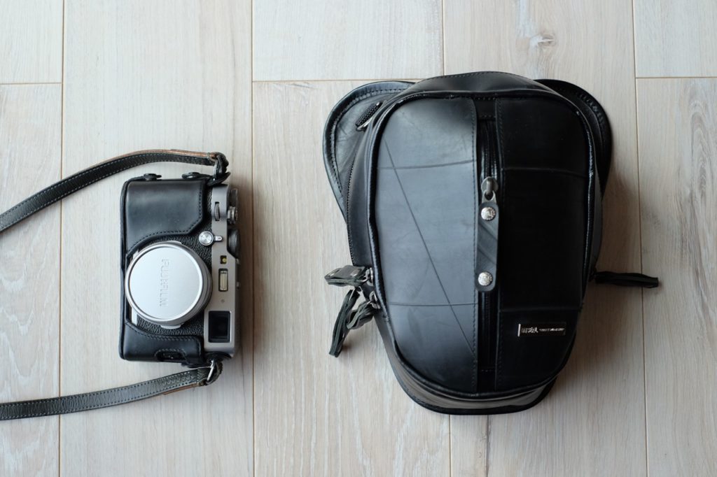このバッグ、かなり厚みがあるのでペットボトルが楽々入ります。といっても、僕の用途は別にありました。それは、FUJIFILMのX100Fを入れること。僕のお散歩カメラです。