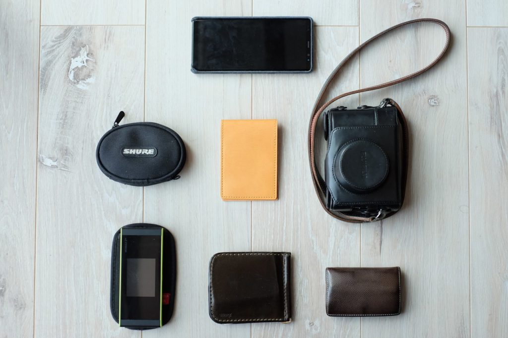 (スマホ、イヤホン、家鍵、カメラ、 モバイルルーター、 マネークリップ、小銭入れ)