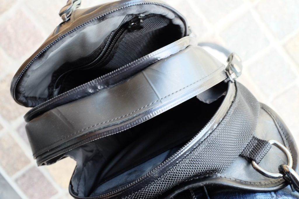 止水ファスナー特有の硬さに難儀しますが、ポケットのサイズ感含めた使い勝手はとてもいいです。ズボンにモノを入れなくて済むので、「落としてないかな」という心配から解放されるのも大きい。ただ、一度だけファスナーを閉め忘れて走行していました…。どちらにしても、落とし物には注意。