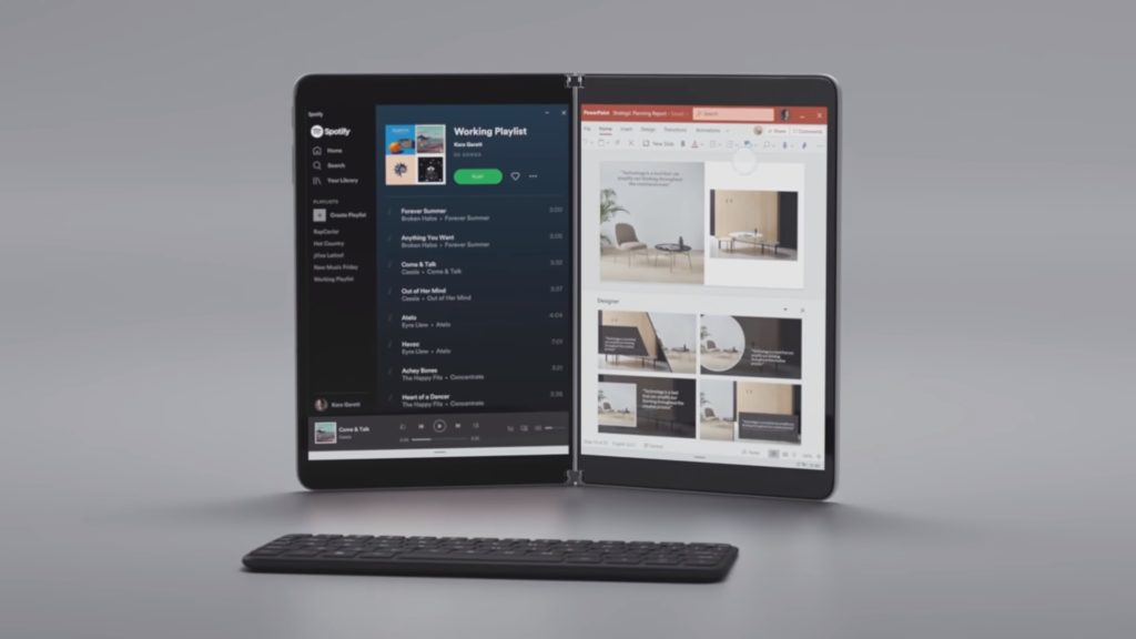 ここまで書きましたが、実はこの製品「詳細スペック」は何も触れられていないプロトタイプ。OSはデュアルディスプレイ用の「Windows 10X」で、発売は「Coming Hodiday 2020」とのこと。