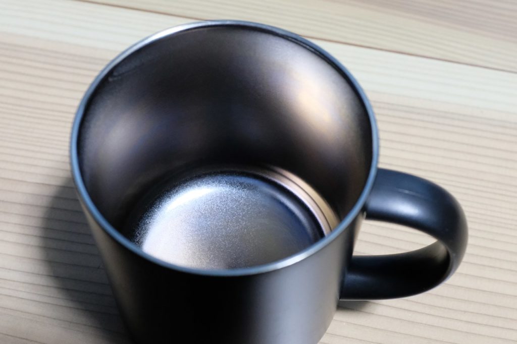初めて使ったときに、盛大に溢しました。ゆっくり持ち上げてコースターに置きましょう。とはいえ、デザインがスッキリしているのでそちら優先かな。飲み口も広くて飲みやすい。